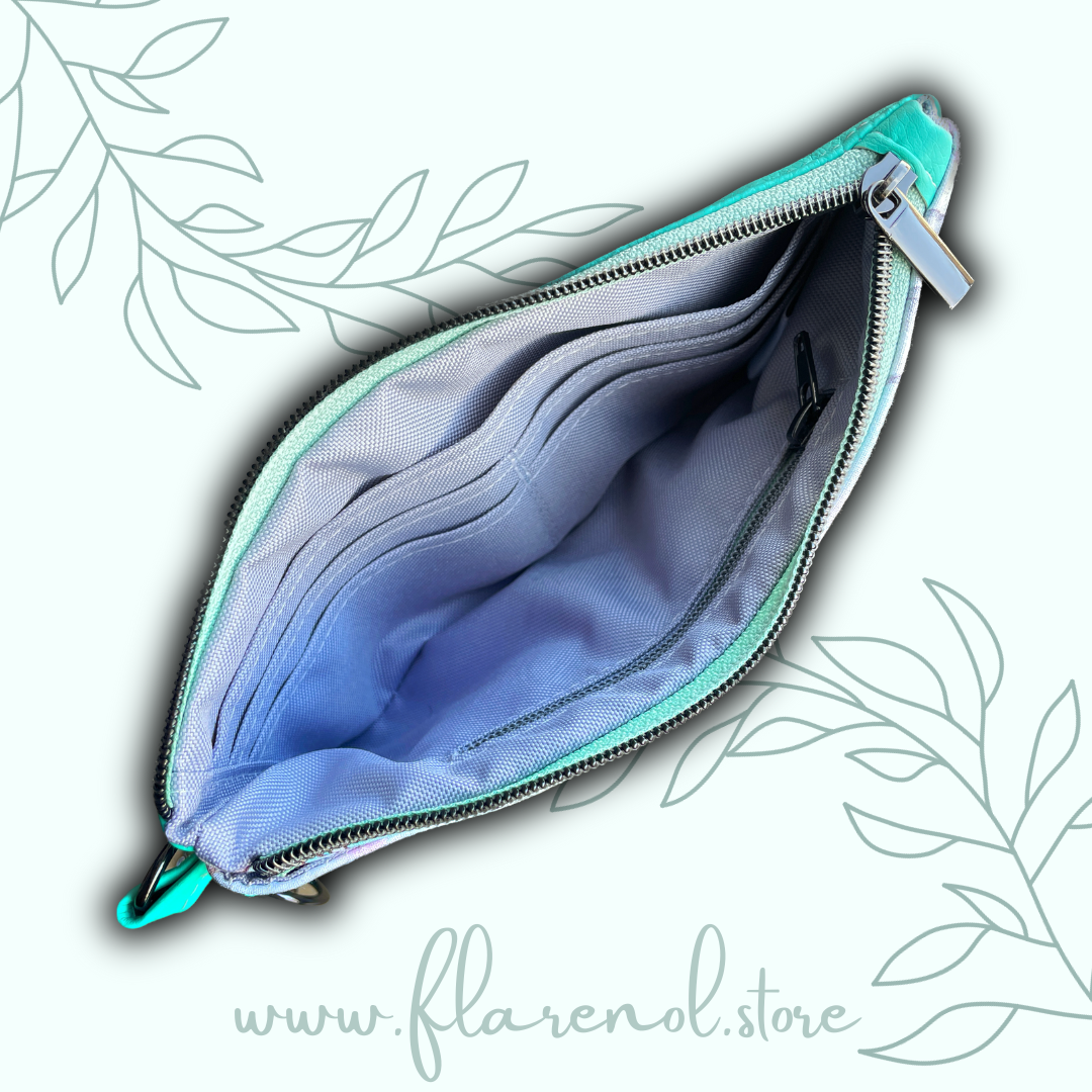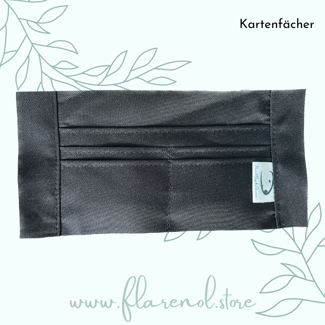Zusätzlich könnt ihr für eine der beiden Reißverschlusstaschen extra Kreditkartenfächer (4 Stück, inkl. Einsteckfach für Geldscheine) und eine zusätzliche kleine Reißverschlusstasche für Kleingeld wählen. Damit hättet Ihr Umhängetasche und Geldbeutel in Einem!