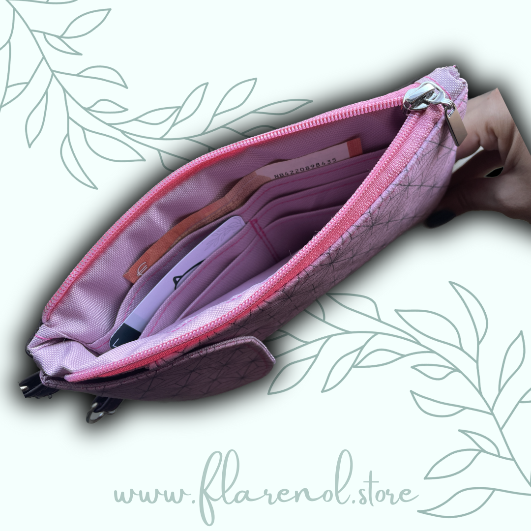 Die Zip n Go ist eine kleine Slingbag/Umhängetasche mit 2 seitlichen Reißverschlusstaschen und einer Fronttasche mit Magnetverschluss.