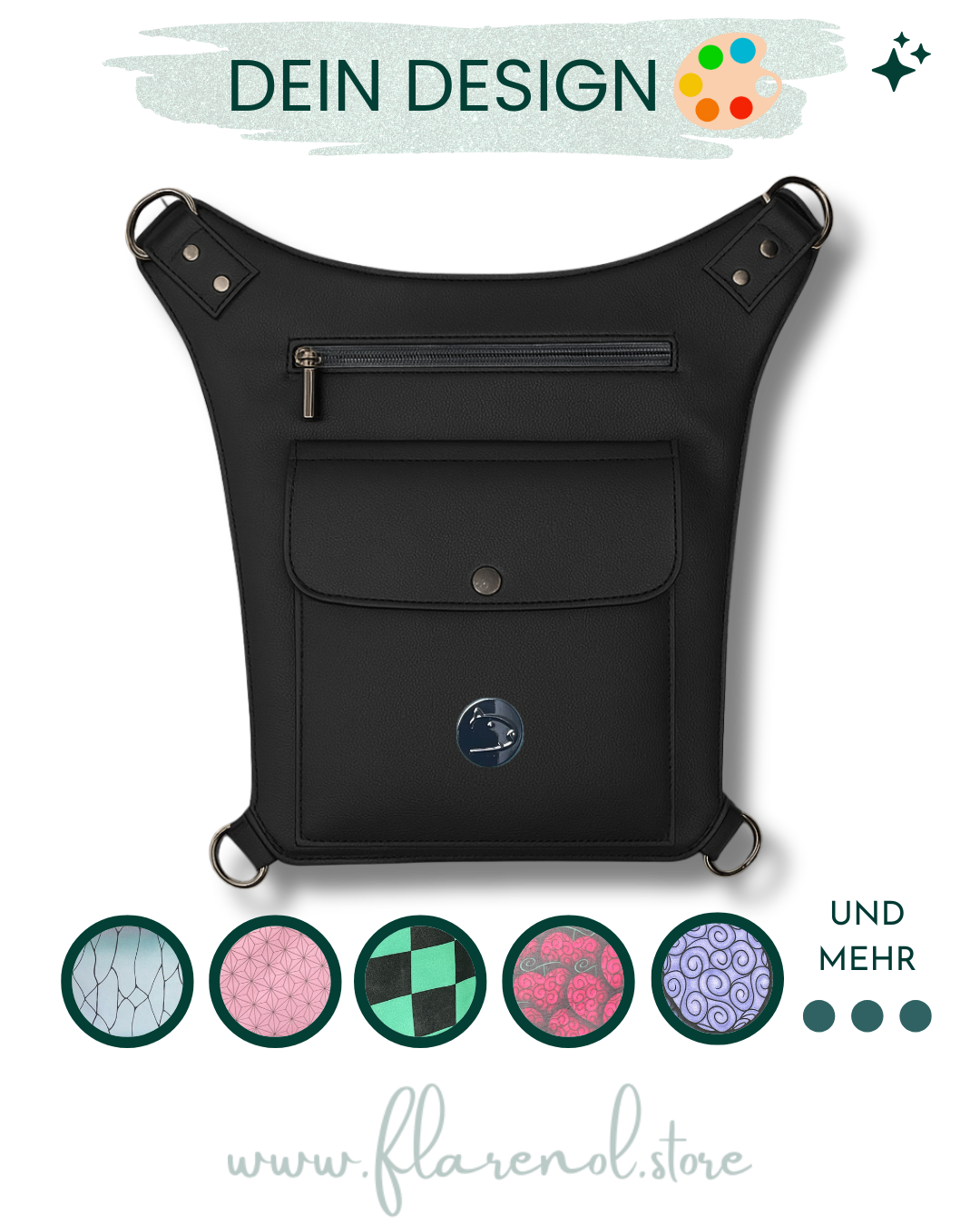 Du stellst dir deine Tasche komplett selbst zusammen - Stoff, Farben und Details werden individuell nach deinem Wunsch gefertigt.