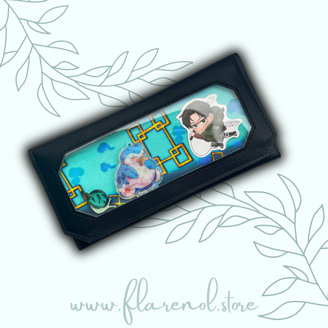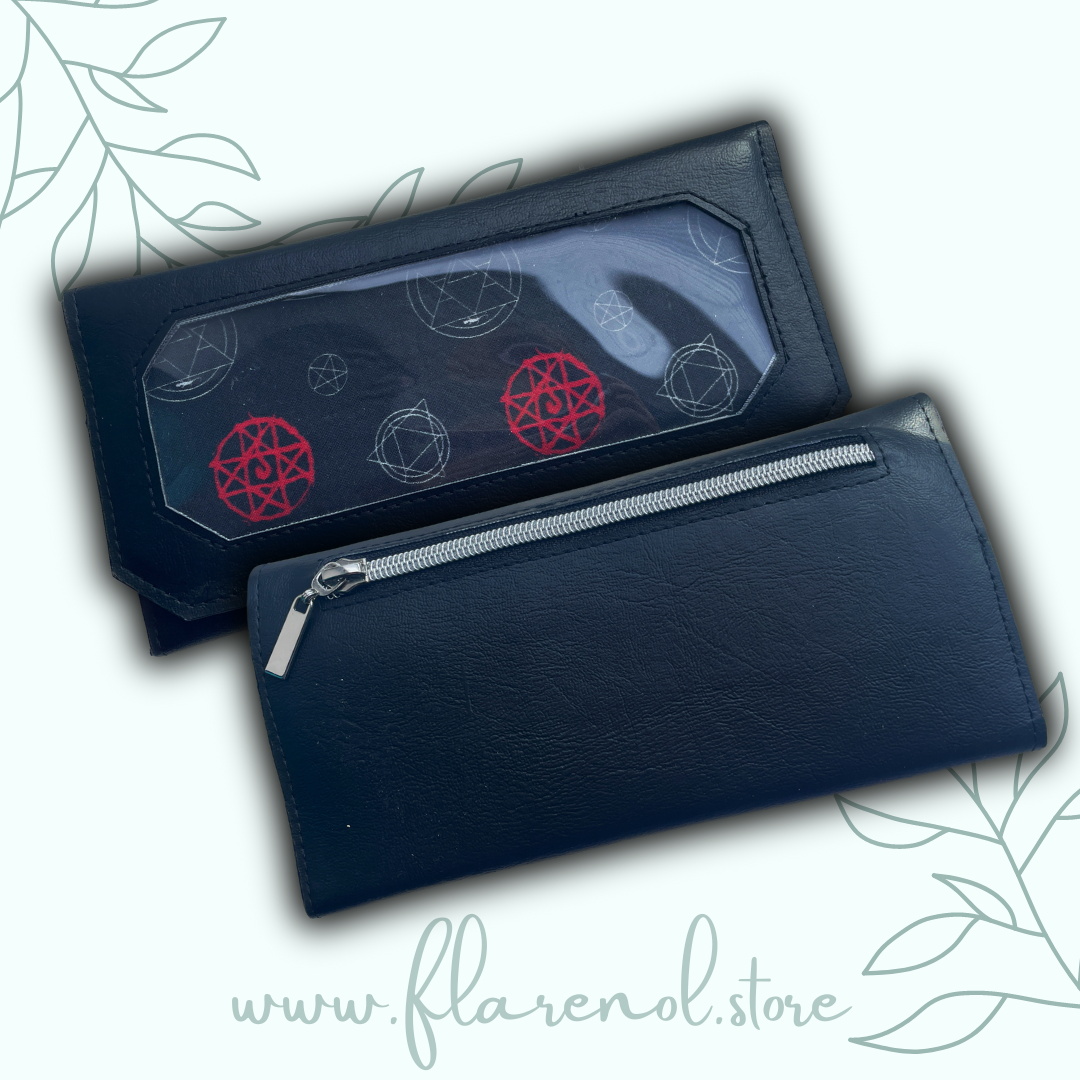 Portemonnaie mit Ita Fenster (klares Sichtfenster) zur Präsentation von Pins und Buttons.