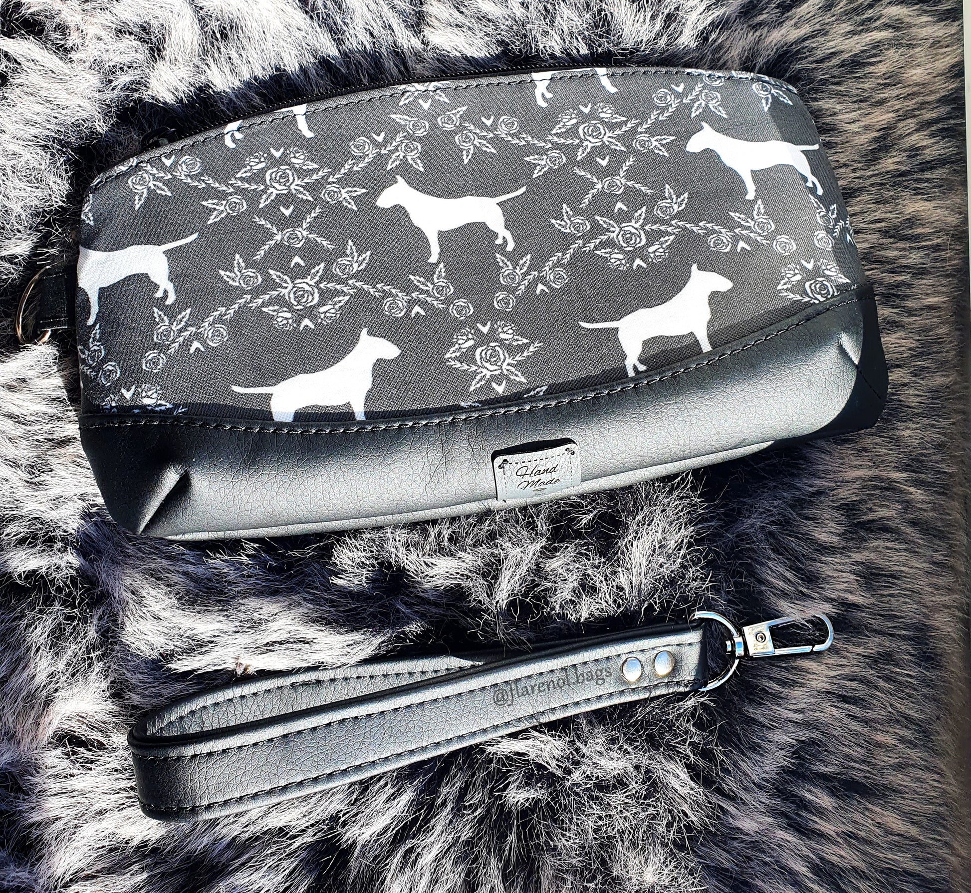 Selbstgenähte Clutch mit Kunstleder Akzent und Wunsch Stoff