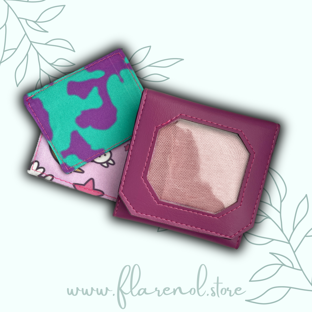 Portemonnaie mit Ita Fenster (klares Sichtfenster) zur Präsentation von Pins und Buttons.